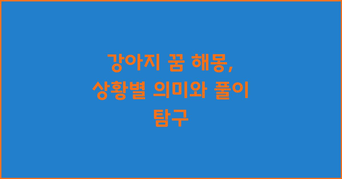 저는 꿈에서 강아지를 통해 제 스스로를 돌아보게 되었고, 그 경험이 제 성장에 큰 도움이 되었다고 믿습니다. 강아지 꿈 해몽: 꿈속 상황과 의미 해석 | 꿈해몽 꿈풀이 꿈해석 꿈의미에서의 정보는 단순한 해석을 넘어, 당신 자신과의 대화를 통해 더 많은 기회를 열어줄 수 있습니다.