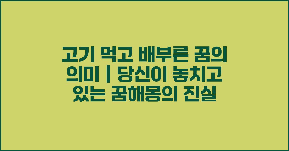 결국, "고기 먹고 배부른 꿈의 의미 | 꿈해몽 꿈풀이 꿈해석 꿈의미"는 우리에게 다양한 메시지를 전달합니다. 자신의 내면을 돌아보는 좋은 기회가 될 수 있으니, 꿈의 메시지를 잊지 말고 마음에 새기세요! 여기서 잠깐, 궁금하신 점이 있다면 FAQ를 참고해 보세요!