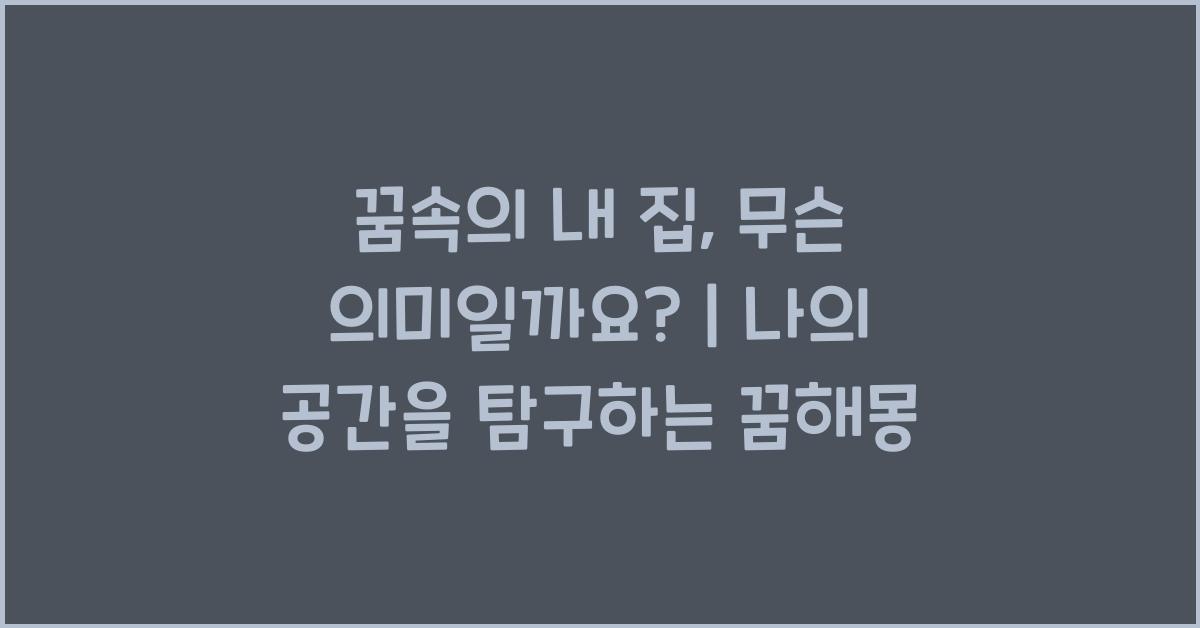 꿈속의 내 집에 대한 해석은 우리가 현재 느끼는 감정, 생각, 그리고 내면의 갈등을 반영합니다. 꿈이 우리에게 전하는 메시지를 통해 자신을 더 깊이 이해하는 여정을 시작해보세요.