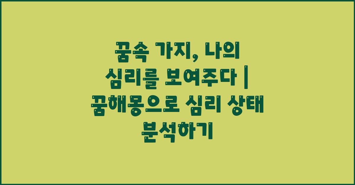 꿈은 인생의 한 순간, 내면의 세계를 탐험하는 신비한 과정입니다. 당신이 꾼 꿈 속에 나타나는 다양한 요소들—사람, 장소, 상황—모두가 당신의 심리에 영향을 미치곤 하죠. 꿈속 가지, 나의 심리를 보여주다, 라는 주제처럼, 꿈은 종종 우리의 심리 상태와 연결되어 있습니다. 특히 꿈은 무의식의 메시지를 전해주기도 하며, 이는 개인의 감정이나 생각과 밀접한 관련이 있습니다.