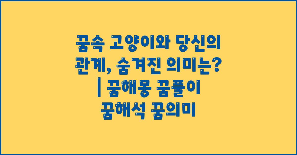 이렇게 꿈속 고양이와 당신의 관계, 무엇을 의미할까? | 꿈해몽 꿈풀이 꿈해석 꿈의미에 대해 이야기해 보았습니다. 꿈은 단순한 환상이 아니라 중요한 메시지를 담고 있음을 잊지 마세요. 여러분의 꿈이 여러분에게 무엇을 말하고 싶은지 잘 들어보시길 바랍니다!