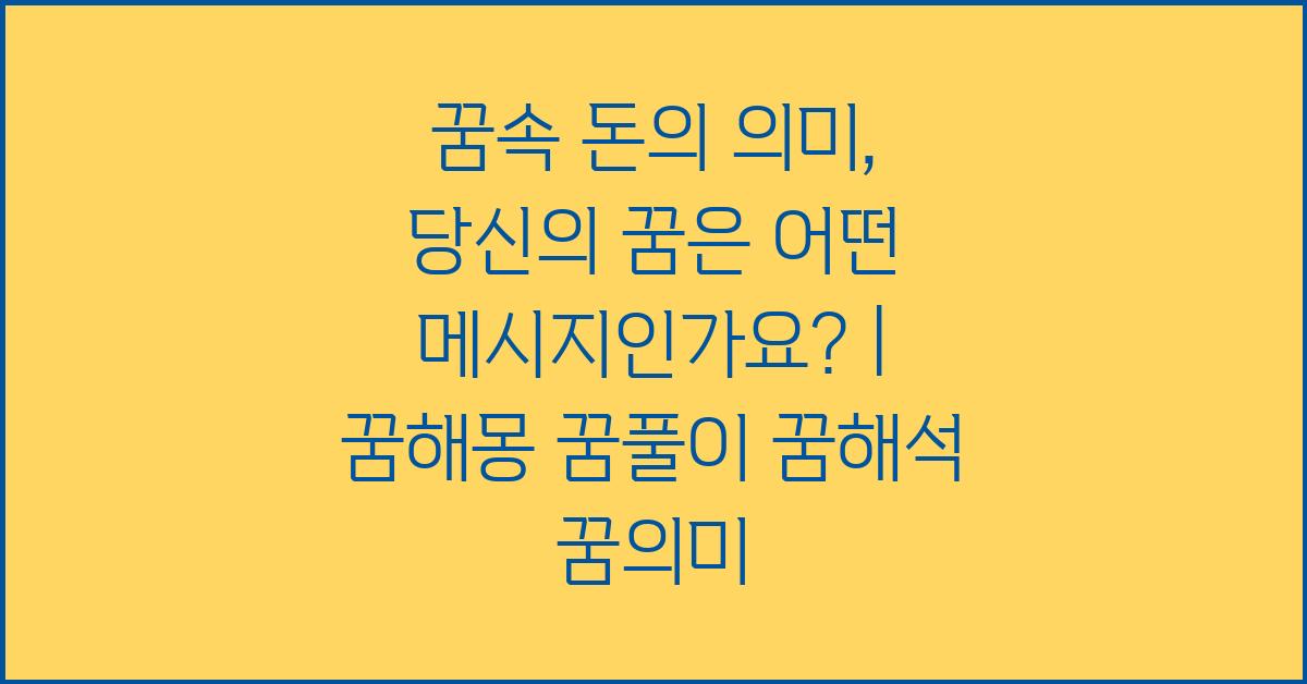 꿈속의 돈은 단순히 금전적인 요소를 넘어, 우리가 느끼는 불안정함이나 기대감을 반영하는 중요한 통찰입니다. 꿈속 돈의 의미를 이해하는 것은 우리의 내면을 들여다보는 유익한 기회를 제공합니다. 이러한 꿈에서 얻은 메시지를 통해 여러분의 삶에서 어떤 변화가 필요할지를 모색해 보길 바랍니다.