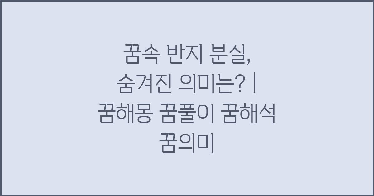 반지를 잃었을 때의 감정이 실생활에서의 심리적 상태를 반영할 수 있습니다. 예를 들어, 최근에 소중한 사람과의 관계가 위태로운가요? 또는 자아에 대한 불안감이 밀려오나요? 꿈속 반지 분실, 어떤 의미를 담고 있을까요? | 꿈해몽 꿈풀이 꿈해석 꿈의미는 그러한 심리적 갈등을 보여줍니다. 꿈은 마음의 속마음을 전달하는 통로가 아닌가 싶습니다. 우리 내면의 불안함을 조금 더 들여다볼 수 있는 기회가 될 수 있습니다.