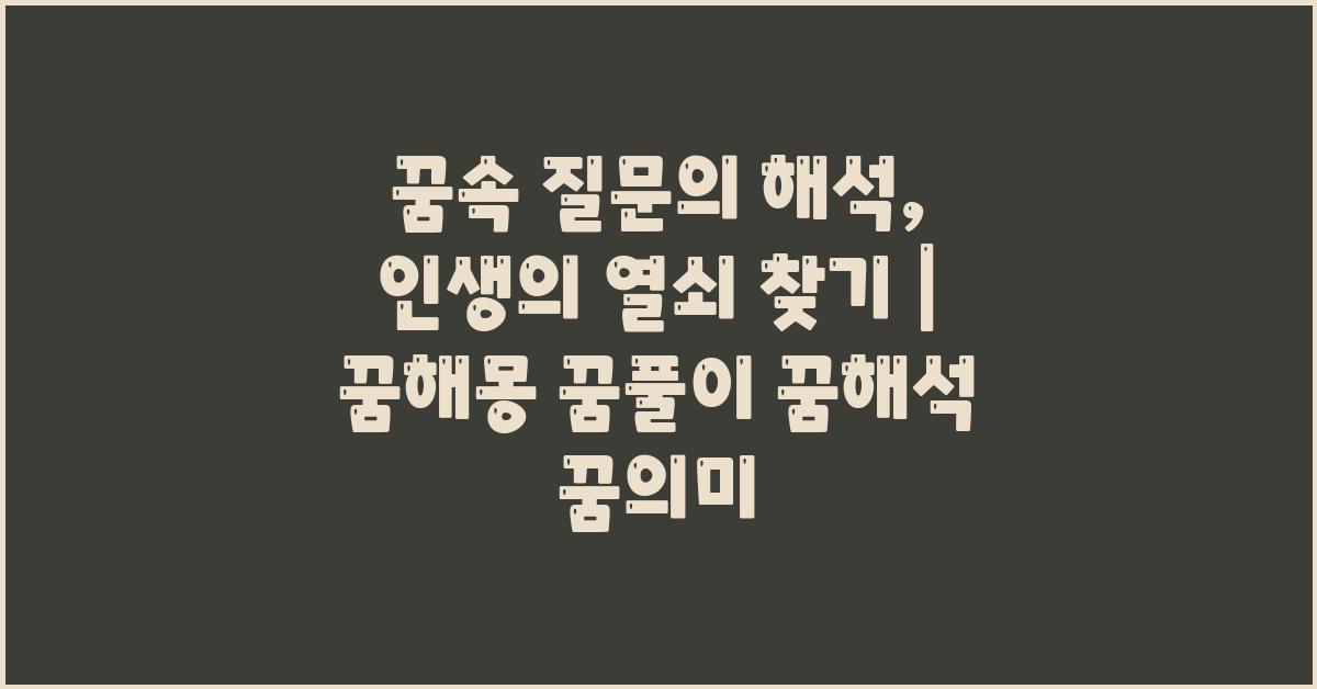 꿈속 질문의 해석, 인생의 열쇠 찾기 | 꿈해몽 꿈풀이 꿈해석 꿈의미는 단순한 오락 이상의 의미를 가지고 있습니다. 꿈은 우리에게 무언가를 말하고자 하며, 우리는 그 메시지를 이해하는 과정에서 성장할 수 있습니다. 여러분도 이 여정을 함께하시길 바랍니다!
