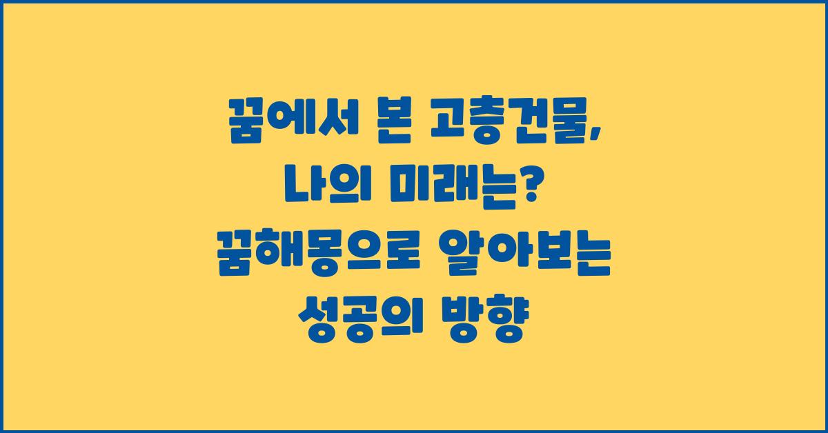 꿈에서 고층건물을 보는 것은 매우 상징적인 경험으로, 여러 가지 의미를 담고 있습니다. 높은 건물은 일반적으로 성공, 상승, 그리고 다가오는 기회를 상징합니다. 꿈속의 고층건물은 여러분이 이루고자 하는 목표를 나타내기도 합니다. 예를 들어, 높은 건물에 올라가고 싶은 욕망은 여러분의 마음속 깊은 곳에서 이루고 싶은 꿈의 그림을 의미합니다.