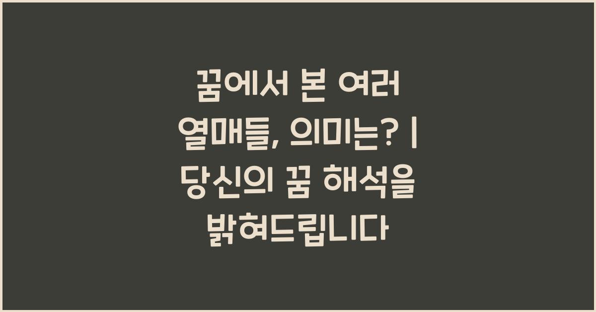 꿈해몽은 단순히 음양오행이나 심리학적 해석에 국한되지 않고, 각 문화의 상징성에 따라 다르게 해석될 수 있습니다. 예를 들어, 한국에서는 특정 과일이 번영이나 행복을 상징하는 경우가 많죠. 여러분도 꿈에서 본 열매들에 대해 생각해보면, 어떤 과일이 떠오르시나요? 특정 열매가 나타나는 꿈은 그 자체로 특별한 의미를 지닐 수 있답니다.