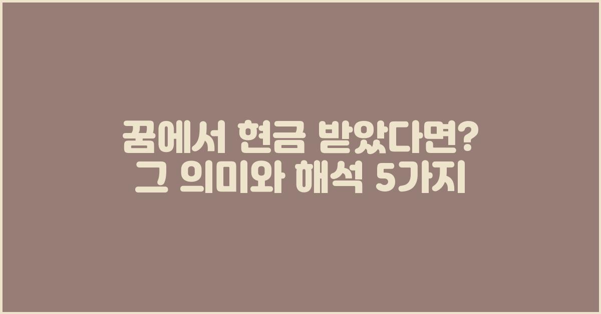꿈은 우리의 잠재의식이 드러나는 특별한 통로입니다. 특히 꿈에서 현금을 받았다면, 이는 단순한 금전적 의미를 넘어 여러 감정과 상황을 반영할 수 있습니다. 이번 글에서는 '꿈에서 현금 받았다면? | 꿈해몽 꿈풀이 꿈해석 꿈의미'라는 주제로 5가지 해석을 함께 살펴보겠습니다.