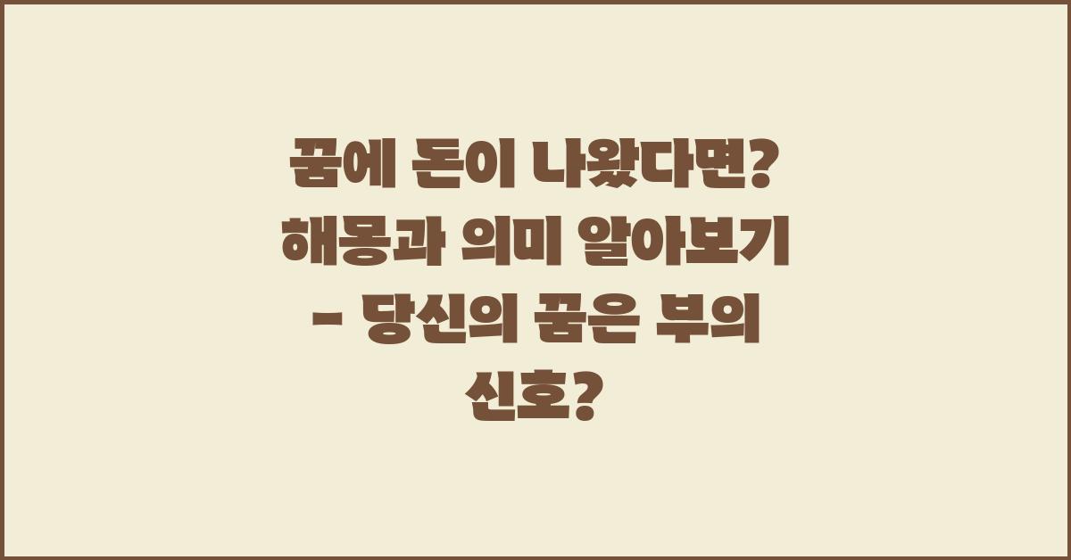 꿈속에서 돈을 보는 경험은 많은 이들에게 흥미로운 주제입니다. 꿈에 돈이 나왔다면? 해몽과 의미를 알아보는 것은 자신의 잠재적인 부를 탐구하는 기회를 제공합니다. 이는 단순히 돈의 상징이 아니라, 부유함과 행복을 가져올 수 있는 기회의 신호일 수 있습니다. 여러분도 이러한 꿈을 꿨다면, 다음 내용을 주의 깊게 읽어보세요.