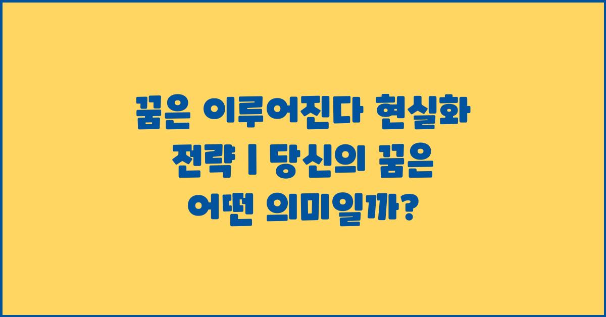 꿈은 우리 삶의 중요한 부분입니다. 꿈은 이루어진다! 현실화 전략을 통해 우리는 그러한 꿈을 실현할 수 있는 방법들을 배울 수 있습니다. 꿈해몽, 꿈풀이, 꿈해석을 통해 자신을 이해하고, 이를 통해 삶의 방향을 설정할 수 있습니다.