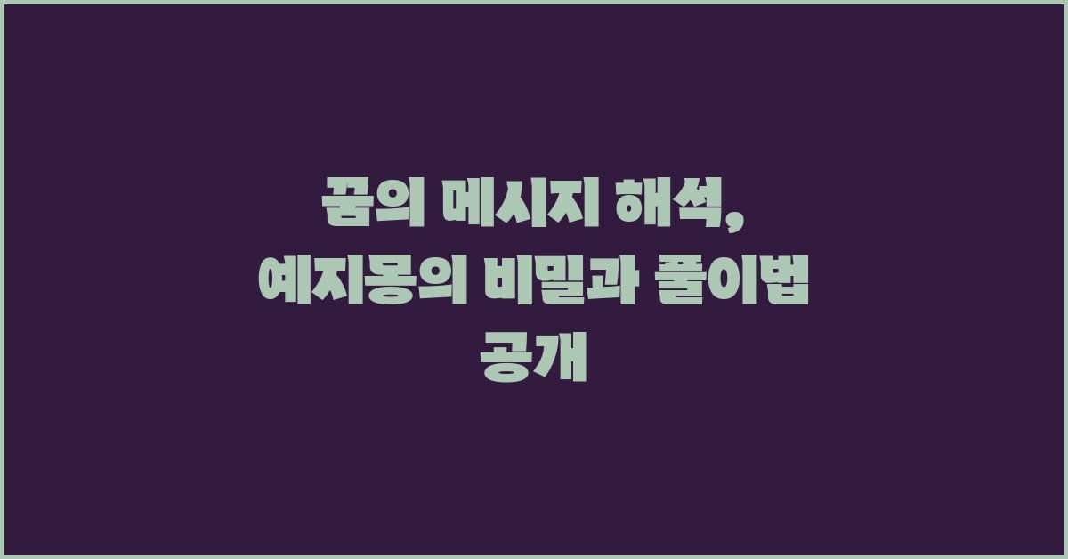 꿈은 우리의 무의식이 말하는 방식이며, 그 속에는 인생에서 중요한 메시지가 숨겨져 있습니다. "꿈의 메시지 해석: 예지몽 분석 완벽 가이드 | 꿈해몽 꿈풀이 꿈해석 꿈의미"를 잘 활용하여 여러분도 꿈 속의 메시지를 잘 해석하고 삶의 유용한 도구로 사용하시길 바랍니다!