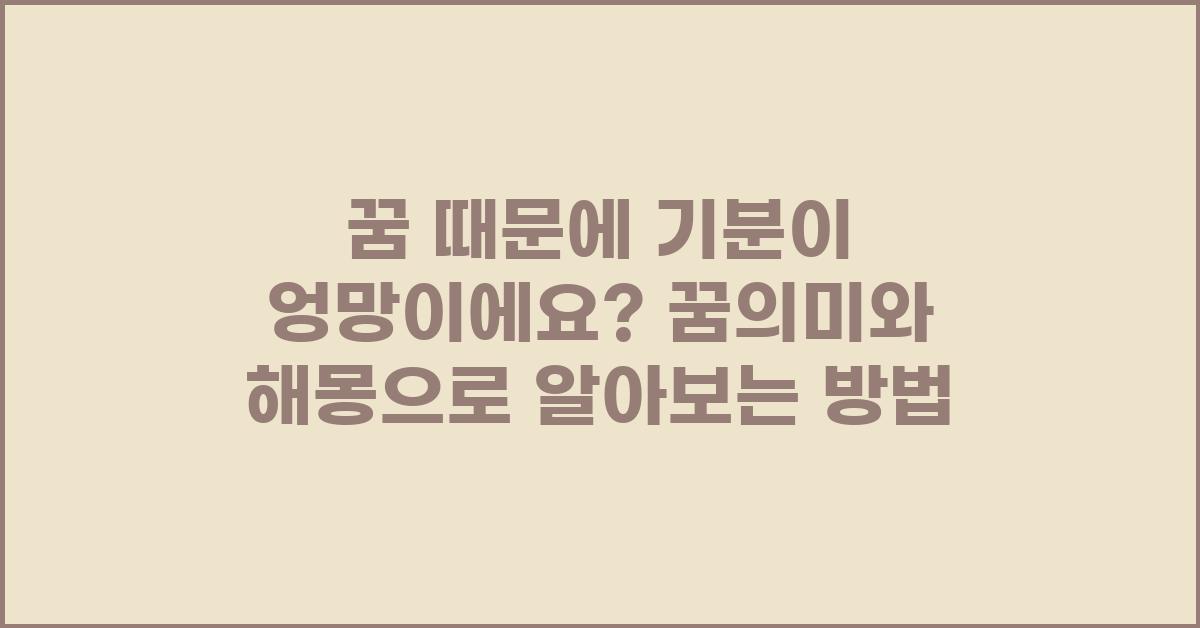1. 꿈 때문에 기분이 엉망이 되는 건 자연스러운 건가요?