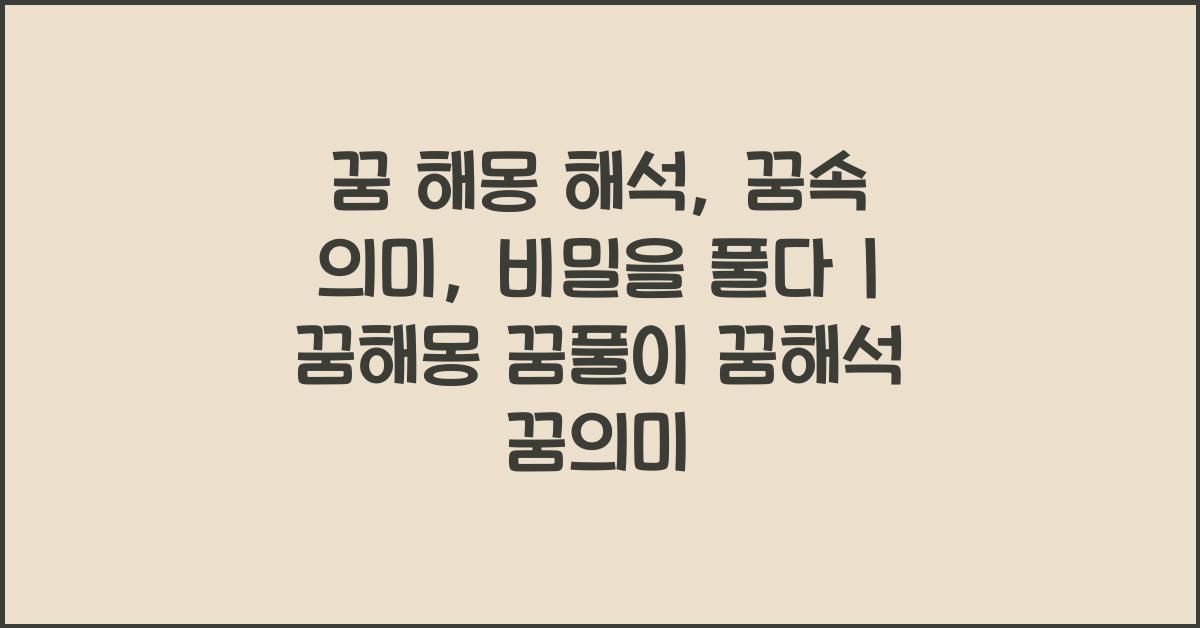 꿈 해몽 해석: 꿈속 의미, 알고 싶은 모든 것 | 꿈해몽 꿈풀이 꿈해석 꿈의미는 여러분이 궁금해하는 모든 것을 아우르고 있습니다. 꾼 꿈을 기억하고, 해석하는 데 도움을 줄 수 있으니, 오늘부터 여러분의 꿈을 깊이 들여다보세요!