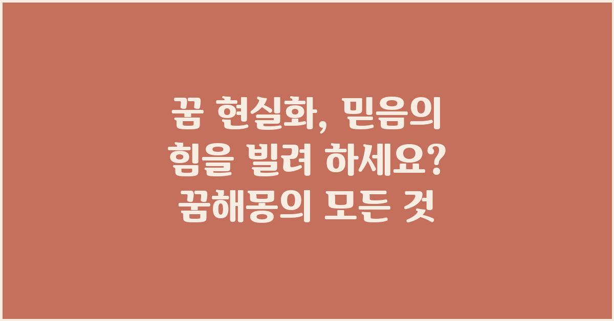 이제 꿈의 힘과 믿음의 중요성을 이해하셨나요? 꿈 현실화, 믿음의 힘을 빌려 | 꿈해몽 꿈풀이 꿈해석 꿈의미는 우리 각자가 자신을 진정으로 이해하고, 삶의 방향을 찾아가는 여정이 될 것입니다. 이러한 과정은 결코 쉬운 일이 아니지만, 그 과정에서 우리는 자신을 더 깊이 이해하고 성장하는 기회를 가지게 됩니다.