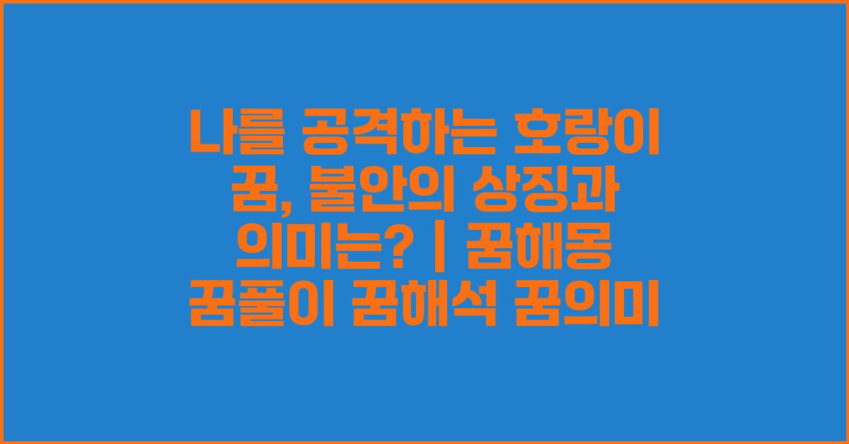 꿈은 단순한 환상이 아닙니다. 우리 내면의 고백입니다. 나를 공격하는 호랑이 꿈, 무서운 의미는? | 꿈해몽 꿈풀이 꿈해석 꿈의미를 통해 우리는 결국 자신의 감정과 마주하게 됩니다. 이런 꿈을 통해 불안과 두려움을 느끼는 것은 우리에게 중요한 성장의 기회가 될 수 있습니다. 이를 통해 우리는 자신을 탐구하고, 실질적인 변화를 추구하는 용기를 가지게 됩니다.