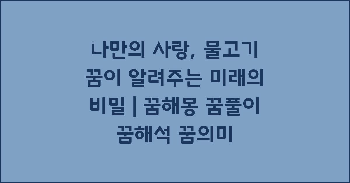 결국, 물고기는 단순한 꿈의 요소가 아니라, 여러분의 내면 깊숙이 숨어 있는 감정과 바람을 드러내는 주인공입니다. '나만의 사랑, 물고기 꿈이 보여주는 미래 | 꿈해몽 꿈풀이 꿈해석 꿈의미'의 깊은 의미를 통해 자신을 되돌아보는 귀한 시간을 가져보세요.