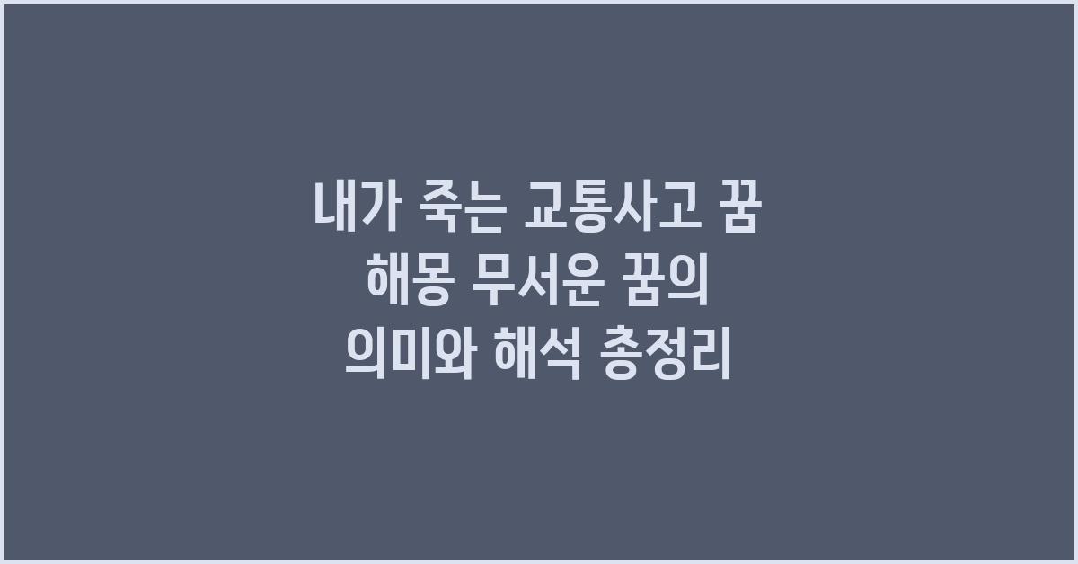 꿈은 항상 우리의 심리와 감정을 반영하는 신비로운 세계입니다. 특히 내가 죽는 교통사고 꿈처럼 무서운 꿈은 많은 이들에게 두려움을 선사하곤 합니다. 이러한 꿈이 대체 어떤 의미를 가지는지, 우리가 이를 어떻게 해석할 수 있는지 알아보겠습니다. 꿈 해몽은 정말 흥미로운 주제이며, 많은 사람들이 이와 관련된 해답을 찾고자 합니다. 그럼 오늘은 내가 죽는 교통사고 꿈, 무서운 꿈 해몽 | 꿈해몽 꿈풀이 꿈해석 꿈의미에 대해 자세히 살펴보겠습니다.