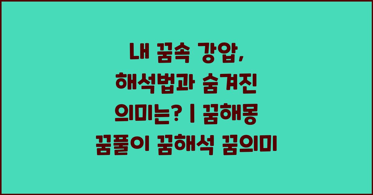 꿈은 우리의 무의식이 드러나는 공간입니다. 특히 꿈속에서의 강압적인 상황은 여러 가지 복잡한 의미를 가질 수 있습니다. 내 꿈속 강압, 어떻게 해석해야 할까? 먼저, 우리가 자주 겪는 꿈속 강압 상황을 돌아보고 그 뒤에 숨겨진 심리적인 요인들을 분석해보는 것이 중요합니다.