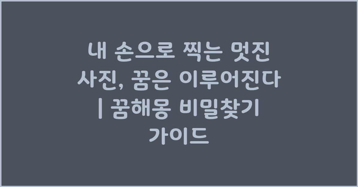 내 손으로 찍는 멋진 사진, 꿈은 이루어진다!는 단순히 멋진 문구가 아니라, 우리의 현실과 꿈을 이어주는 다리가 될 수 있습니다. 사진 속 순간들을 통해 나의 꿈과 감정을 이해하고, 꿈의 해석을 통해 나에게 의미 있는 메시지를 받을 수 있음은 매우 특별한 경험입니다. 꿈 해석이 나의 목표를 이루는 과정에서 도움이되기를 바랍니다.