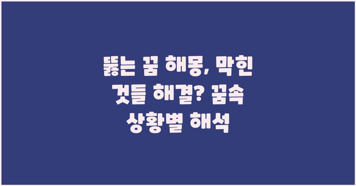 뚫는 꿈 해몽: 꿈속 상황별 해석 | 꿈해몽 꿈풀이 꿈해석 꿈의미라는 주제는 우리의 심리와 삶 속에서 중요한 의미를 가집니다. 꿈의 맥락을 분석하고 그 안에서 자신의 문제를 찾는 다각적인 접근이 필요합니다. 꿈은 단순히 우리에게 잠깐의 생각을 불러일으킬 뿐만 아니라, 삶의 변화를 이끌어내는 힘도 지니고 있다는 점을 잊지 마세요. 여러분도 이러한 꿈을 통해 어떤 변화를 이끌어낼 수 있을지 고민해보세요!
