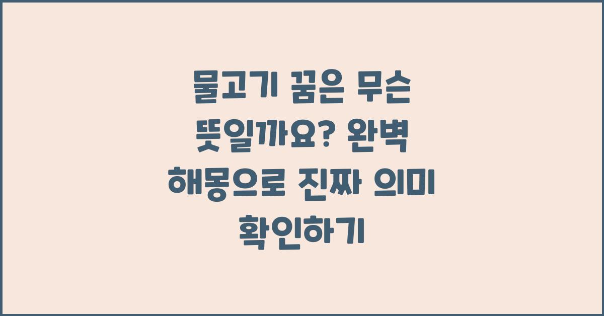물고기 꿈은 무슨 뜻일까요? 완벽 해몽 | 꿈해몽 꿈풀이 꿈해석 꿈의미에 대한 질문은 꾸준히 이어지고 있습니다. 물고 것이다가 원하는 바, 또는 인생에서 성취하고 싶은 목표를 상징하는 경우가 많습니다. 꿈 속에서 물고기가 어떻게 행동하는지, 또한 당신의 감정이 어떤지에 따라 다양한 해석이 가능하답니다.