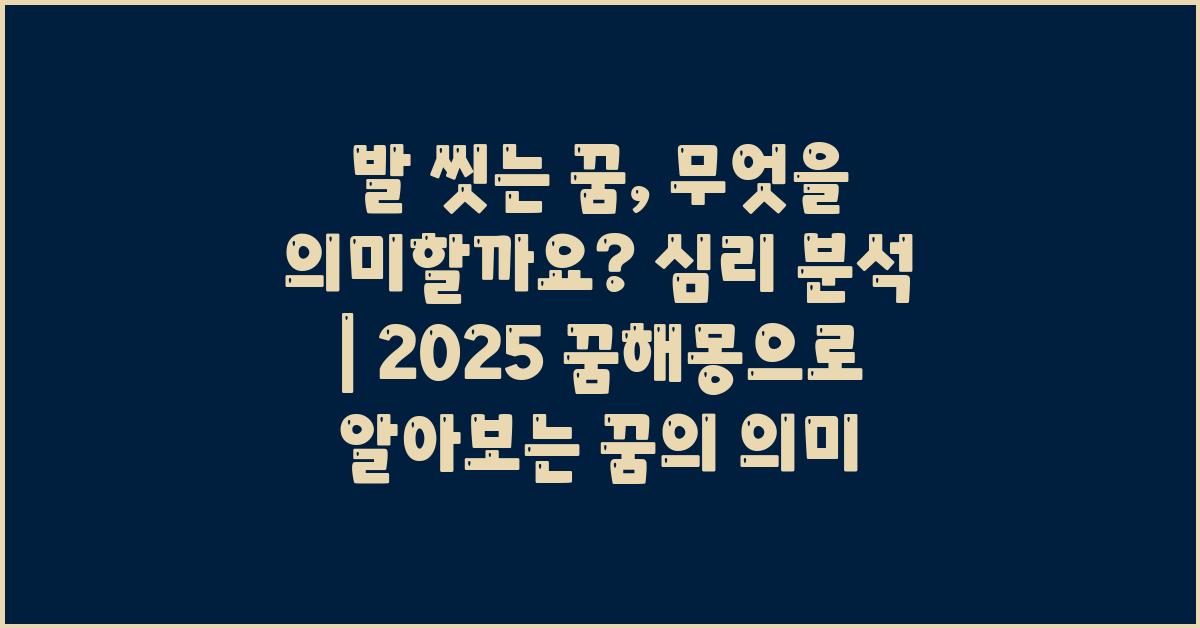 발 씻는 꿈, 무엇을 의미할까요? 심리 분석을 통해 이 꿈은 삶의 변화, 감정의 정리, 타인과의 관계를 돌아보도록 하는 중요한 신호일 수 있습니다. 자아를 돌아보며 과거의 짐을 털어내고, 더 나은 미래를 위해 나아가는 시작점으로 삼는 것이 중요합니다.