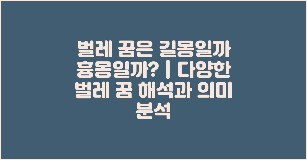꿈속에서 벌레를 보는 것은 많은 사람들에게 불쾌한 경험이 될 수 있습니다. 하지만 이러한 꿈이 과연 길몽일까 흉몽일까? 꿈 해몽에 대해 조금 더 깊이 들어가 보아야 할 것 같습니다. 내 경험상, 사람들은 벌레 꿈을 통해 진실한 감정이나 불안감을 확인하게 됩니다. 이 글에서는 벌레 꿈에 대한 다양한 해석을 통해 여러분의 궁금증을 해소하려고 합니다.