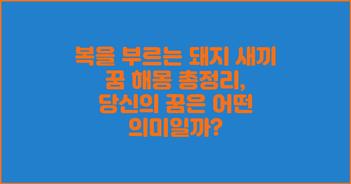 복을 부르는 돼지 새끼 꿈 해몽 총정리 | 꿈해몽 꿈풀이 꿈해석 꿈의미를 활용하여 일상생활에서 여러분의 꿈을 해석하고, 더 나아가 자신의 삶에 긍정적인 영향을 미치는 방법을 찾아보세요. 꿈은 단순한 환상이 아니라, 때로는 우리가 놓치고 있던 소중한 메세지를 전달하곤 합니다.