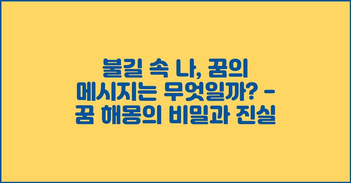 꿈은 우리 삶에서 빼놓을 수 없는 중요한 부분입니다. 특히 꿈에서 느꼈던 감정이나 상황은 삶의 여러 측면을 반영하기도 하죠. 불길 속 나, 꿈의 메시지는 무엇일까? | 꿈해몽 꿈풀이 꿈해석 꿈의미를 탐구하기 위해선 꿈의 메타포와 의미를 이해하는 것이 우선입니다. 꿈은 종종 당신의 내면의 욕망, 두려움, 그리고 불안감을 반영하기 때문이죠. 그래서 꿈을 해석하는 과정은 마치 자신의 영혼을 들여다보는 것과 비슷합니다.
