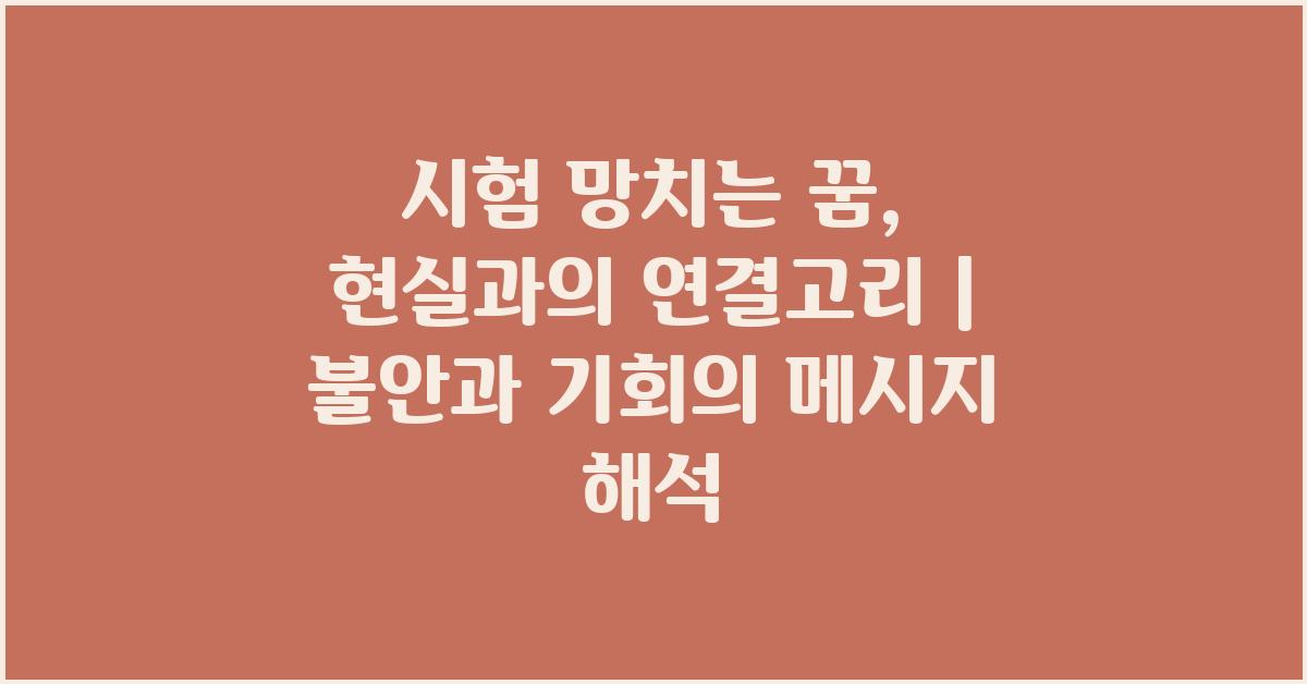 시험 망치는 꿈은 불안이라는 감정을 자연스럽게 표현한 것일 수 있습니다. 그 불안 뒤에 숨겨진 기회는 우리의 디딤돌이 됩니다. 더 나아가 이러한 경험을 통해 우리는 자신을 다시 한 번 돌아보게 되고, 더 나은 방향으로 나아갈 수 있는 힘을 기를 수 있습니다. 여러분이 꾼 꿈들은 단순한 이미지가 아닙니다. 그것들은 여러분의 내면을 들여다보는 열쇠일지도 모릅니다.
