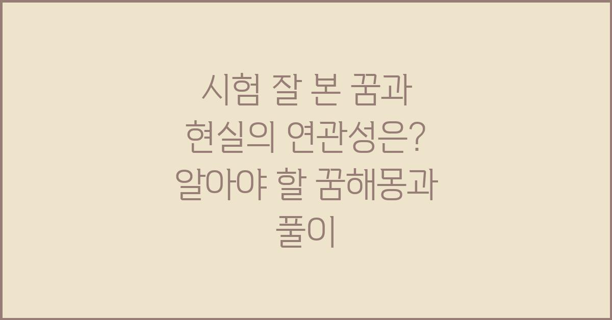꿈 해몽은 때때로 주관적일 수 있으나, 특정한 패턴이나 상징이 존재하는 경향이 있습니다. 시험은 대개 도전과 평가를 상징하고, 시험 잘 본 꿈은 성공적인 결과를 예고하는 경우가 잦습니다. 꿈 해몽에서 시험은 실제 경험과 중첩되어 있는 경우가 많아 그 의미를 본인의 상황에 맞게 해석해야 합니다.