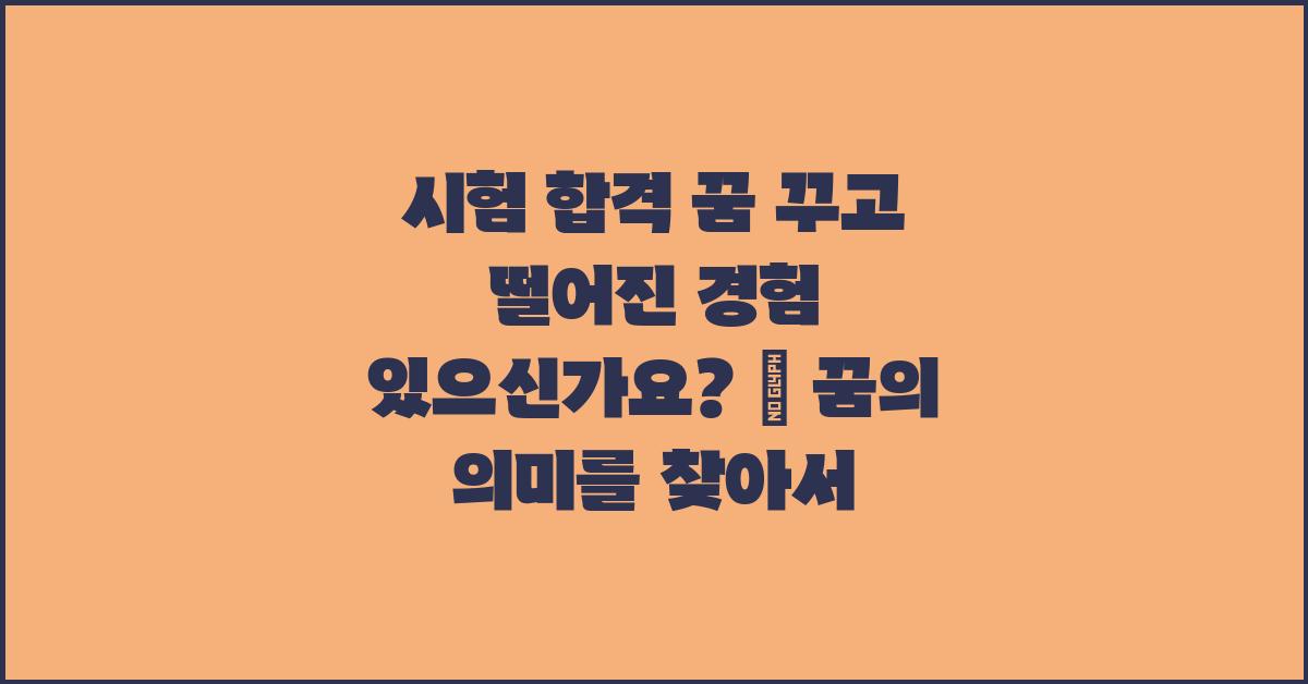 시험 합격 꿈 꾸고 떨어진 경험 있으신가요? 꿈은 우리의 잠재의식과 감정을 드러내는 중요한 요소입니다. 특히 시험과 관련된 꿈은 매우 흔하게 나타나며, 그 해석은 다양합니다. 많은 사람들이 자신이 원하는 결과에 대한 압박감이나 두려움을 꿈속에서 겪기도 합니다. 이러한 꿈은 우리의 일상과 정신적인 상태를 반영하고 있죠. 그럼, 어떤 상황에서 이런 꿈이 나타나는지, 그리고 이러한 경험이 주는 의미에 대해 이야기해보겠습니다.