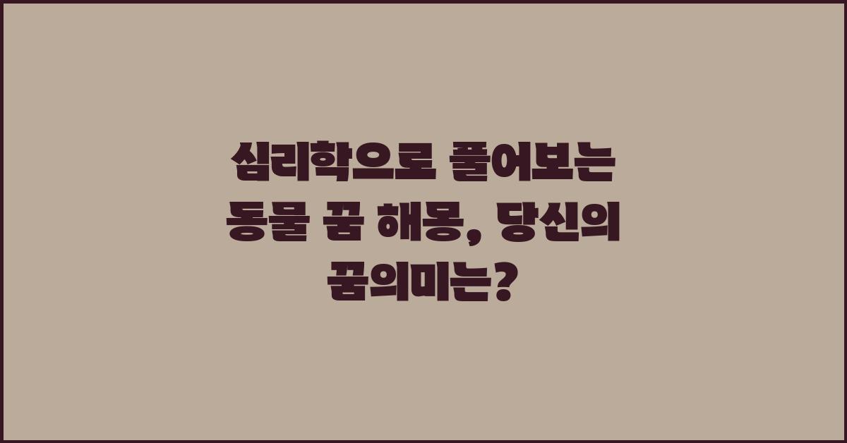 꿈은 우리의 잠재의식이 만들어내는 신비로운 영역으로, 특히 동물과 관련된 꿈은 다양한 상징과 의미를 지녔습니다. 꿈속에서 동물이 등장하는 순간, 우리는 그 동물이 전하는 메시지를 읽어내야 합니다. 심리학으로 풀어보는 동물 꿈 해몽 | 꿈해몽 꿈풀이 꿈해석 꿈의미의 관점에서 이야기해보겠습니다. 꿈은 단순한 환상이 아니라, 우리의 감정과 뇌의 복잡한 활동을 반영합니다.