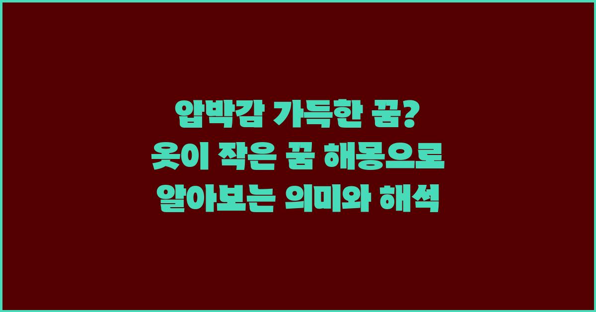 압박감 가득한 꿈? 옷이 작은 꿈 해몽 | 꿈해몽 꿈풀이 꿈해석 꿈의미를 통해 우리는 많은 것을 배울 수 있습니다. 꿈은 단순한 환상이 아니라, 나의 내면의 목소리를 이해하는 중요한 수단이 된다는 사실을 상기하시기 바랍니다. 여러분의 꿈을 통해 스스로를 더 깊이 이해해 보세요. 그리고 이러한 꿈을 통해 비로소 변화의 시작이 될 것입니다!