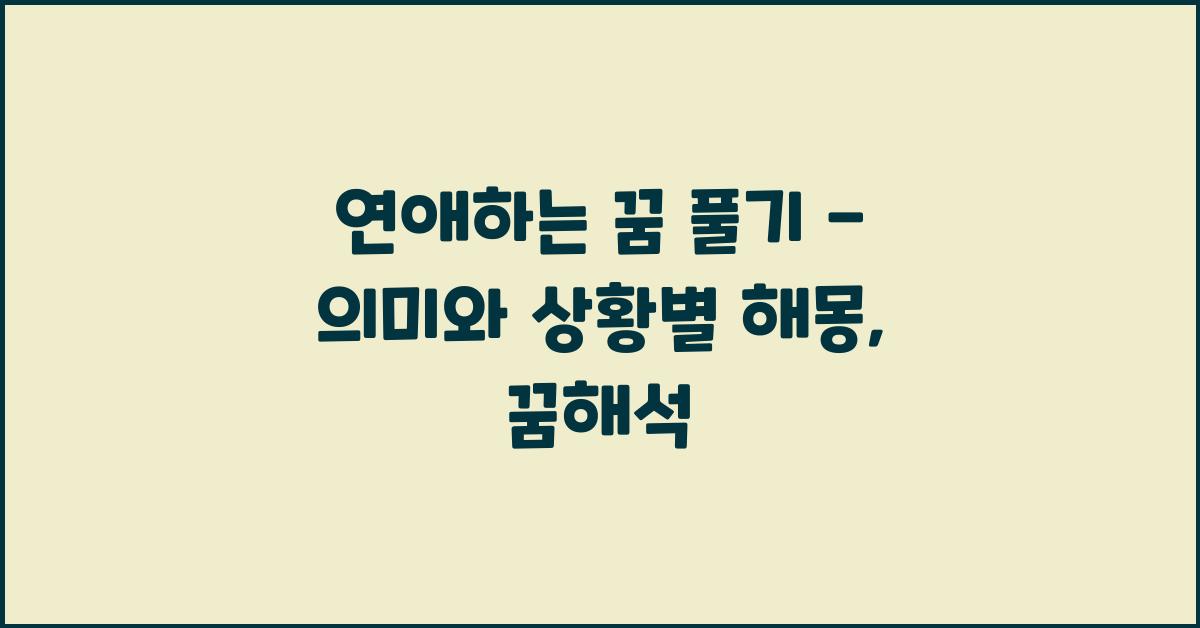 연애하는 꿈은 보통 긍정적인 감정을 반영하지만, 개인의 심리 상태와 상황에 따라 다르게 해석될 수 있습니다.