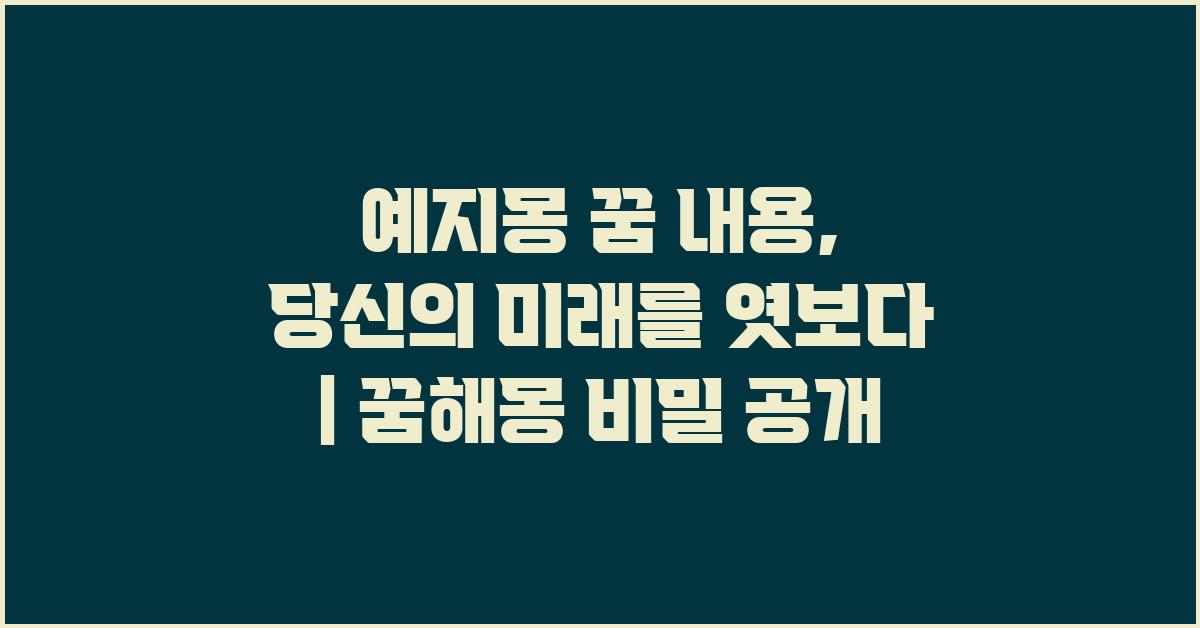 즉, 우리가 꿈속에서 보는 것들이 우리의 감정, 경험, 그리고 무의식의 단편일 수 있다는 관점에서 접근할 수 있습니다. 다양한 꿈의 유형 중에서도 예지몽이 두드러지는 이유는 단순히 주관적인 경험이 아닌, 다수의 사람들이 비슷한 경험을 공유하고 있다는 점이죠. 이러한 예지몽 꿈 내용: 당신의 미래를 엿보다 | 꿈해몽 꿈풀이 꿈해석 꿈의미를 이해하는 것은 그 과정을 통찰할 수 있는 중요한 발판이 될 것입니다.