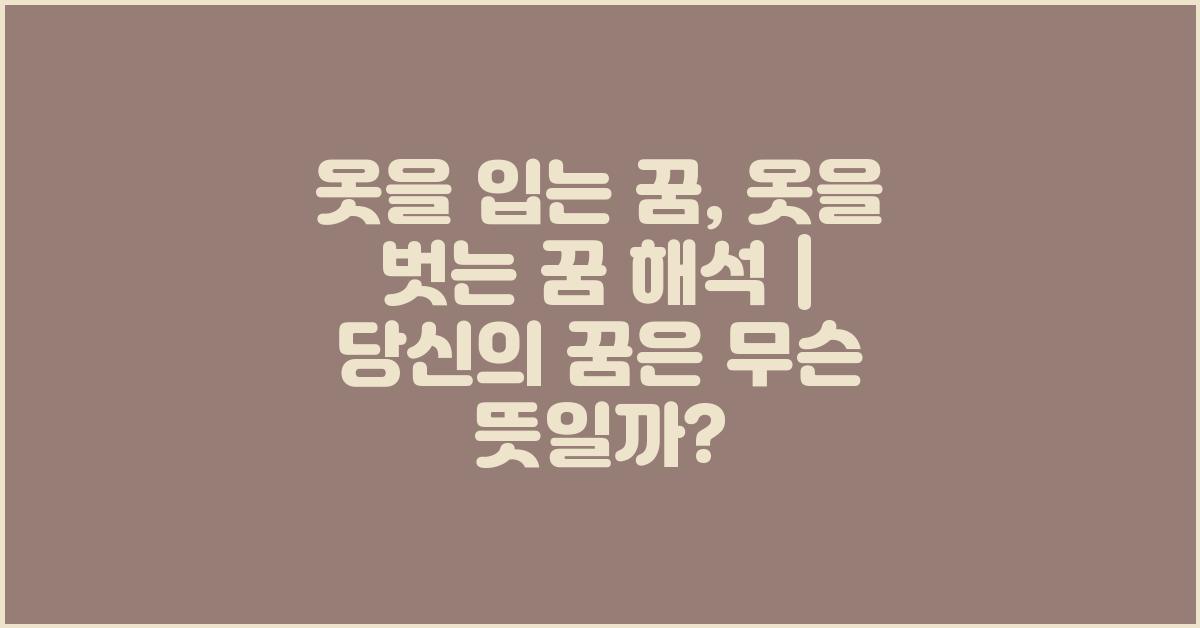 꿈은 무의식의 창구로, 우리 각자 내면의 깊은 감정이나 상황을 보여줍니다. 옷을 입거나 벗는 꿈은 우리 삶의 다양한 상황을 반영하고 있어, 꿈의 해석은 매우 중요합니다. 자신이 꿈에서 어떤 옷을 입고 있었는지, 혹은 어떤 상황에서 옷을 벗었는지를 돌아보는 것이 유용합니다. 이러한 꿈해몽을 통해 여러분은 자신의 현재 상황과 감정을 더 깊이 이해할 수 있습니다.