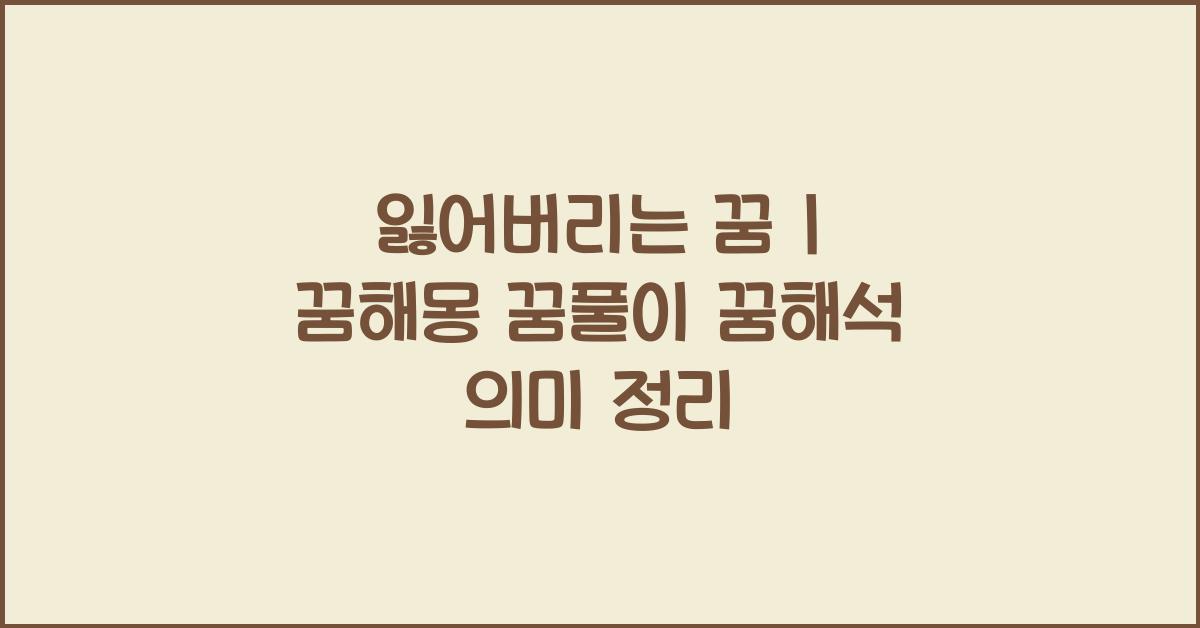 이 기사는 잃어버리는 꿈에 대한 다양한 해석과 의미를 정리하였습니다. 잃어버리는 꿈이 주는 상징적 의미와 그것이 개인의 삶에 미치는 영향을 함께 살펴보세요.
