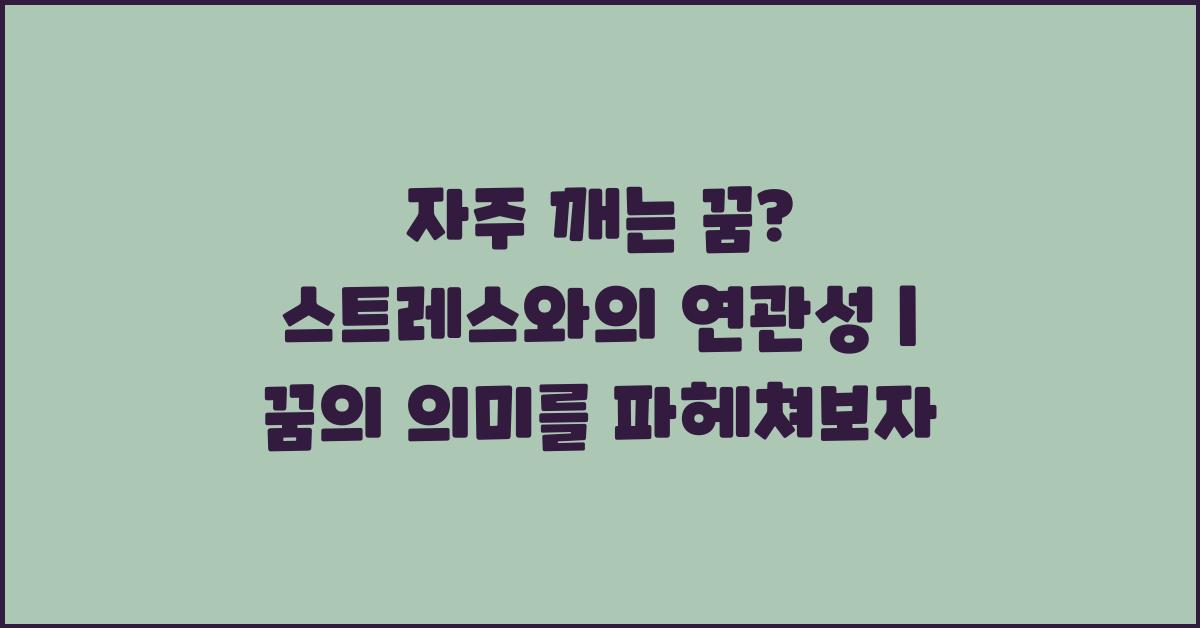 A1: 예, 자주 깨는 꿈은 스트레스나 불안 상태와 밀접하게 관련되어 있습니다.