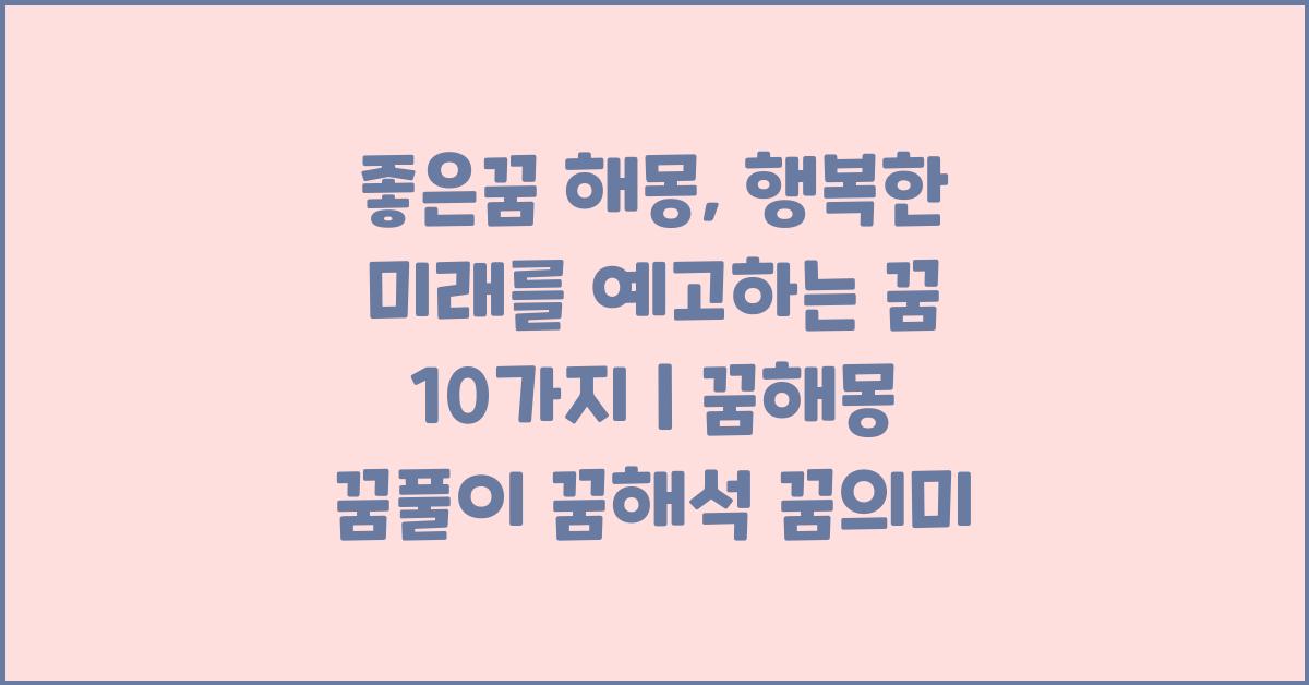 다음은 좋은꿈 해몽: 행복한 미래를 예고하는 꿈들 | 꿈해몽 꿈풀이 꿈해석 꿈의미 중에서도 특히 긍정적인 메시지를 담고 있는 10가지 꿈의 예시입니다. 혹시 여러분은 이러한 꿈들을 꾼 적이 있으신가요? 그렇다면 다가오는 좋은 일들에 대한 예고일지도 모릅니다!