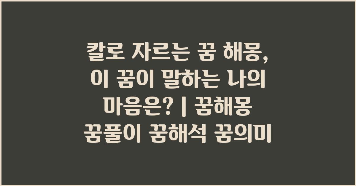 꿈은 우리 마음속 깊은 곳에서 숨겨진 감정이나 생각을 드러내는 신비로운 창구입니다. 특히 '칼로 자르는 꿈'은 이러한 심리를 더욱 정교하게 나타냅니다. 여러분이 칼로 뭔가를 자르는 꿈을 꿨다면, 이는 단순한 꿈에 그치지 않습니다. 여러분의 현재의 감정 상태나 마음의 갈등을 반영할 수 있는 신호일지도 모릅니다. 꿈 해몽은 우리가 스스로를 이해하는 데 도움을 줄 수 있습니다.