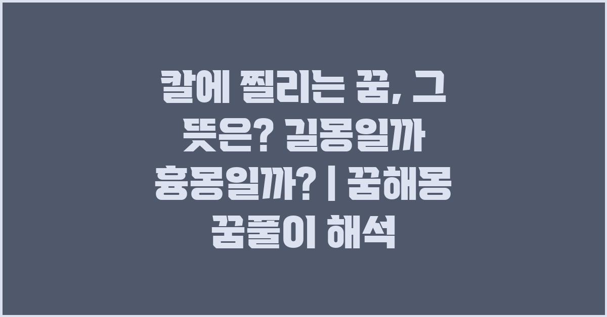 꿈 속에서 칼에 찔리는 경험은 누구에게나 충격으로 다가올 수 있습니다. 꿈은 우리의 무의식 속 깊은 감정을 드러내는 채널이기 때문에, 칼에 찔리는 꿈을 꿨다면 그 의미에 대해 진지하게 고민해 볼 필요가 있습니다. 이 꿈이 어떤 의미를 내포하고 있는지, 그리고 길몽인지 흉몽인지에 대한 고민은 우리에게 중요한 통찰을 제공합니다. 그렇다면, 칼에 찔리는 꿈은 과연 어떤 메시지를 담고 있을까요?