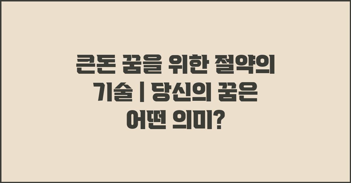 우리의 꿈이란 무엇인가요? 이루고 싶은 목표, 그리고 그 목표를 위해 필요한 자원의 집합체입니다. 그 중에서도 경제적인 자원은 필수적이죠. 그래서 우리는 항상 절약에 대해 생각해야 해요. 큰돈 꿈을 위한 절약의 기술 | 꿈해몽 꿈풀이 꿈해석 꿈의미는 그러한 절약이 꿈을 이루는 데 어떻게 기여하는지를 보여줍니다. 절약을 통해 얻은 자원은 결국 우리의 꿈으로 이어질 수 있습니다. 절약이 단순히 소비를 줄이는 것이 아니라, 필요한 것을 위해 계획적으로 사용하는 기술이라는 것을 잊지 말아야 해요.