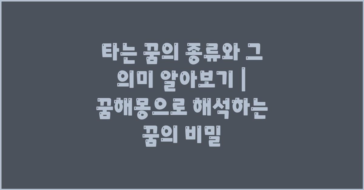 타는 꿈의 종류와 그 의미 알아보기 | 꿈해몽은 우리에게 중요한 메시지를 주곤 합니다. 그 꿈이 무언가를 암시하거나 경고하는 것일 수 있죠. 그래서 꿈을 통해 우리가 느끼는 감정과 상황을 심층적으로 이해하는 것이 중요합니다.