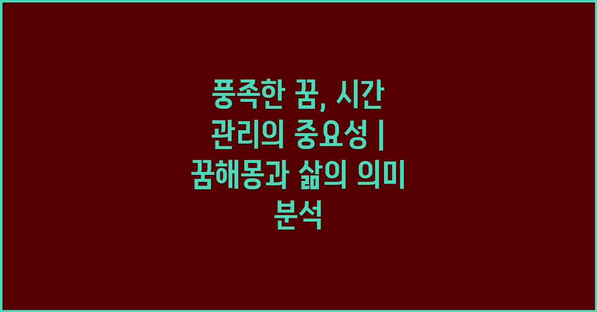 우리의 무의식이 전달하는 메시지를 이해하려는 노력은 자신을 돌아보는 시간이 됩니다. ‘풍족한 꿈, 시간 관리의 중요성 | 꿈해몽 꿈풀이 꿈해석 꿈의미’를 통해 꿈과 현실을 연결해 실질적인 변화를 끌어오는 능력을 키울 수 있어요.