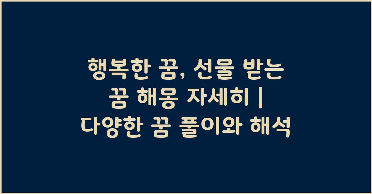 우리가 잠을 자는 동안 꿈은 종종 우리에게 특별한 메시지를 전해줍니다. 꿈은 무의식의 창으로, 내면의 갈등과 소망을 드러내며, 특히 '행복한 꿈, 선물 받는 꿈 해몽 자세히 | 꿈해몽 꿈풀이 꿈해석 꿈의미'와 같은 특별한 꿈들은 우리의 감정을 더 깊이 이해할 수 있는 기회를 제공합니다. 이러한 꿈은 사랑, 행복, 그리고 기쁨의 상징으로, 그 꿈들이 전달하는 의미를 곰곰이 생각해볼 필요가 있습니다.