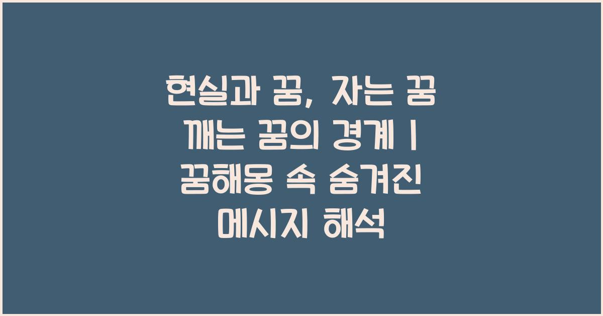 이 글에서는 현실과 꿈, 자는 꿈 깨는 꿈의 경계에 대해 탐구하고, 꿈해몽 속 숨겨진 메시지를 해석하여 독자들에게 도움이 될 만한 정보를 제공합니다.